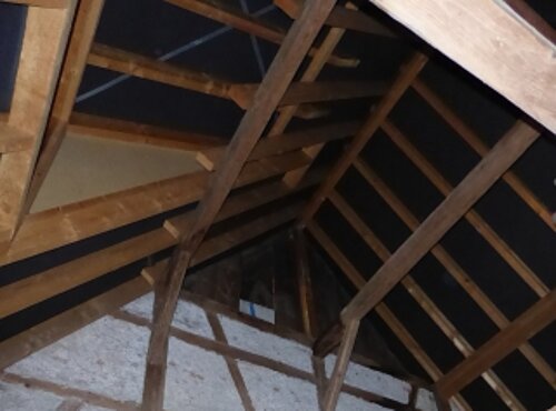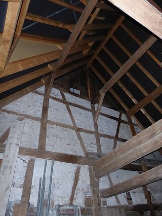 Dachstuhl der Scheune innen.